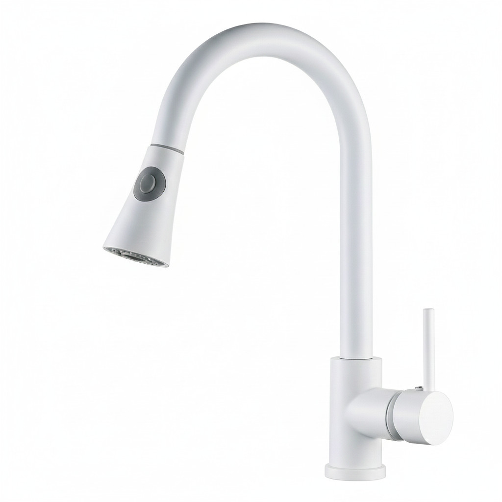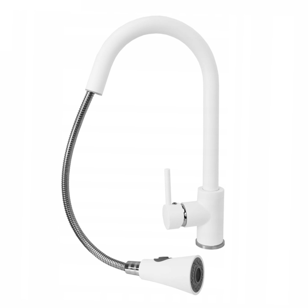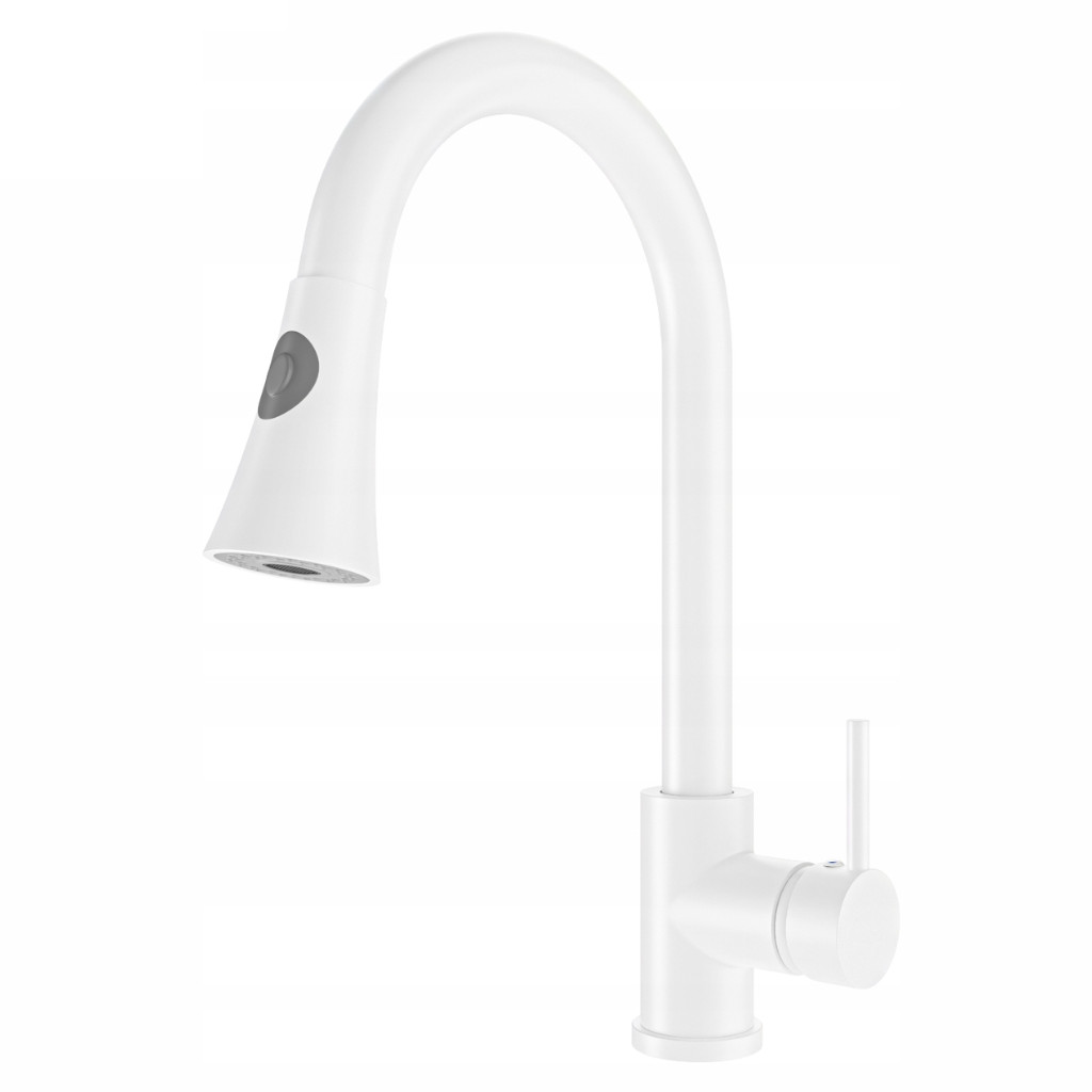 Welland Siena mosogató csaptelep, kihúzható szórófejjel, ami normál vagy spray üzemmódban állítható. Hosszú élettartamot biztosító többszörös rétegben, elektrosztatikus technológiával festett csaptelep, precíz kerámia keverőszeleppel és víztakarékos perlátorral. Fehér szín.
