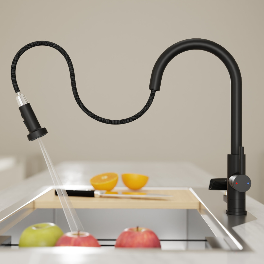 Kihúzható fej: a csaptelep feje 60 cm hosszúságig kihúzható, a vízsugár tetszés szerint irányítható.