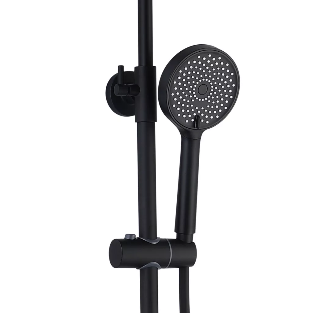 Welland C6613 zuhanyrendszer falon kívüli felszállócsővel, sárgarézből készült precíz keverőszeleppel ellátott csapteleppel. A váltókapcsoló segítségével a víz folyása a zuhanyrózsából vagy a 23 cm-es fejzuhanyból történhet. készlet tartalmaz egy 23 cm-es fejzuhanyt és egy zuhanyrózsát, mindkettő modern Anti-Calc rendszerrel.