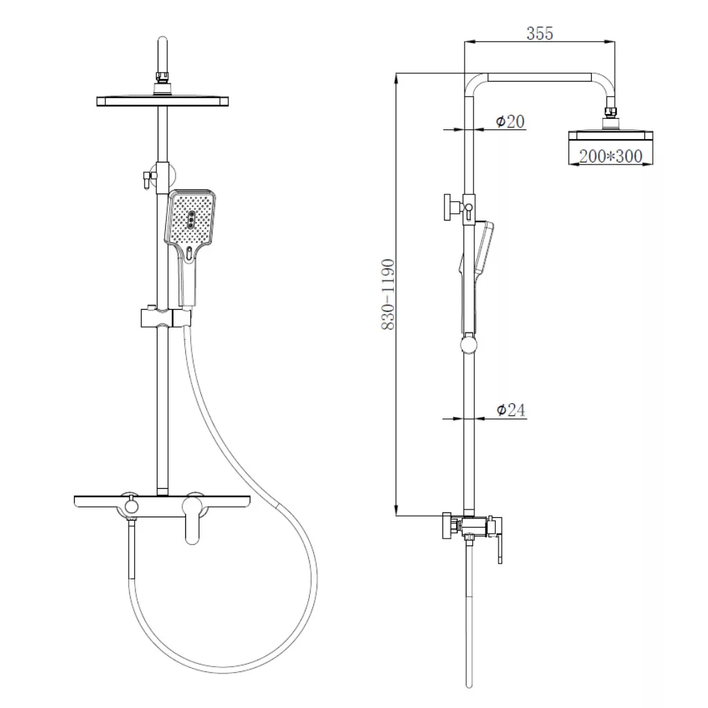 Zuhany csaptelep, Esőztető fejzuhany, Zuhanyrózsa gégecsővel, Tartó konzolok