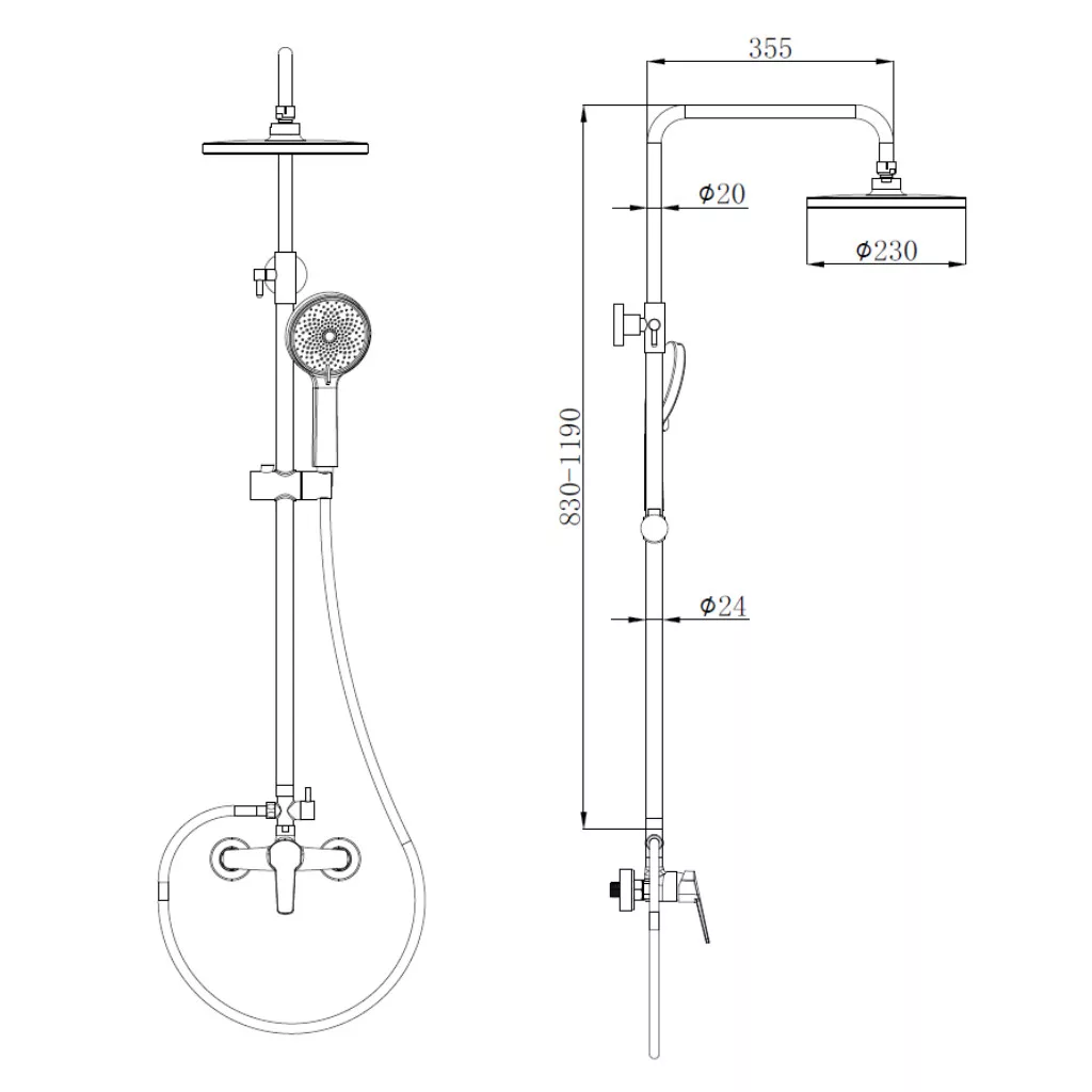 Welland C6613 zuhanyrendszer falon kívüli felszállócsővel, sárgarézből készült precíz keverőszeleppel ellátott csapteleppel. A váltókapcsoló segítségével a víz folyása a zuhanyrózsából vagy a 23 cm-es fejzuhanyból történhet. készlet tartalmaz egy 23 cm-es fejzuhanyt és egy zuhanyrózsát, mindkettő modern Anti-Calc rendszerrel.