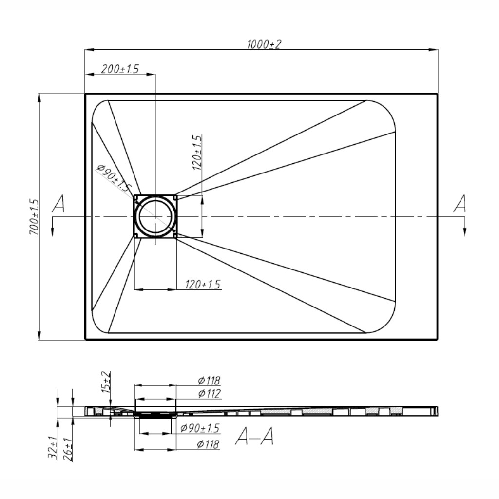 Padlóra vagy padlóba süllyesztve: A zuhanytálca mindössze 26 mm-es magassága lehetővé teszi a hagyományos padlóra vagy a padlóba süllyesztett felszerelést, így egyedi, egységes felületet alkot.