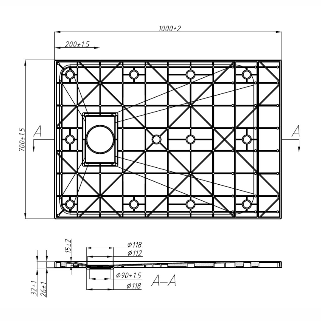 Optimális lejtés: A zuhanytálcát úgy alakították ki, hogy a víz szabadon áramolhasson a lefolyó felé, e kellő lejtési szöggel, ami még nem érzékelhető. Biztosítja a víz gyors és hatékony elvezetését a zuhanytálca felületéről, megelőzve a tócsák kialakulását vagy a víz kifolyását.