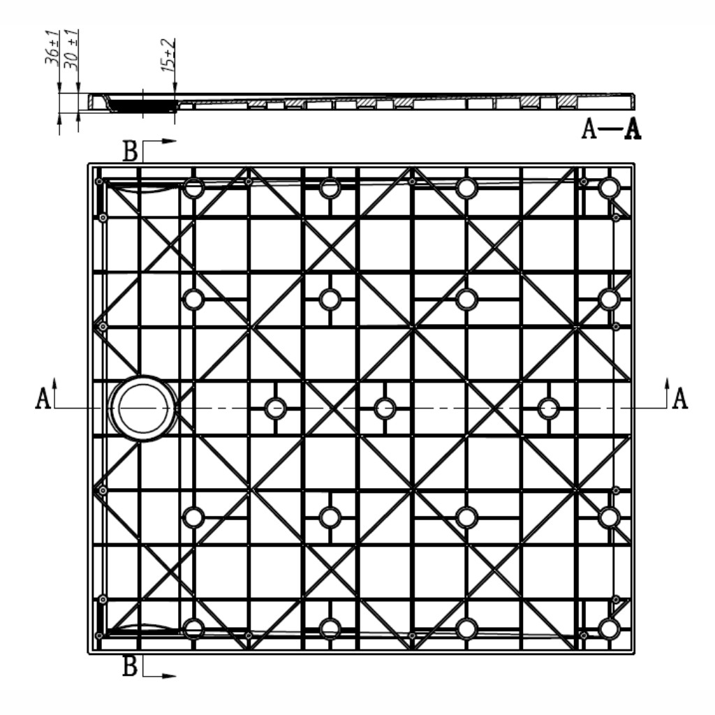 Optimális lejtés: A zuhanytálcát úgy alakították ki, hogy a víz szabadon áramolhasson a lefolyó felé, e kellő lejtési szöggel, ami még nem érzékelhető. Biztosítja a víz gyors és hatékony elvezetését a zuhanytálca felületéről, megelőzve a tócsák kialakulását vagy a víz kifolyását.