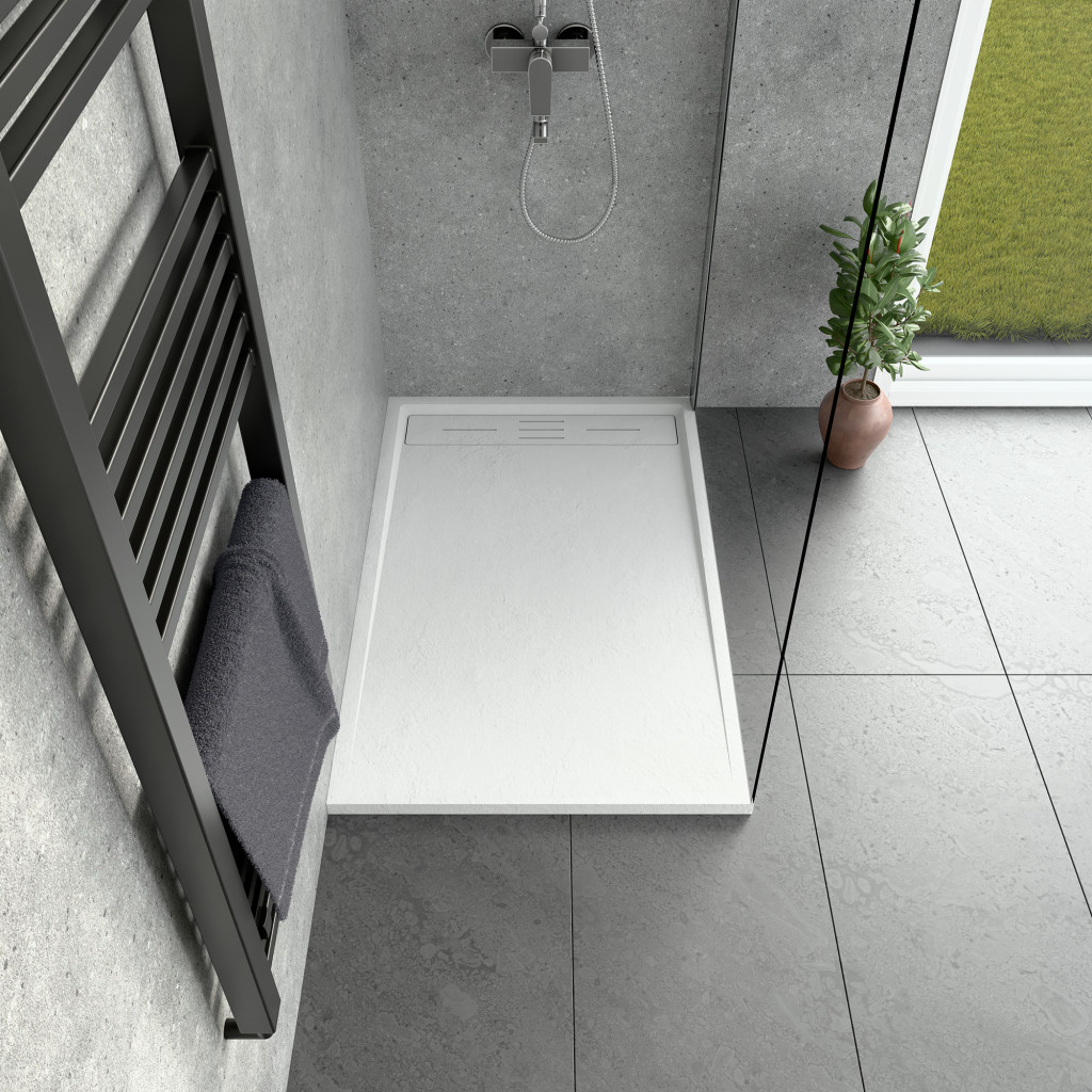 Welland kőhatású zuhanytálca, ami egyesíti a legújabb fürdőszobai trendeket a praktikus felhasználással. Telepíthető a padlóra vagy padlóba is süllyeszthető, ezáltal a végső padlóburkolattal egy síkban kialakított zuhanyfelületet kapunk. Rejtett zuhanylefolyóval kialakított változat, kellemes tapintású, eszétikus, természetes kőhatású felülettel, ami hatékonyabb csúszásgátlást kínál a hagyományos akril zuhanytálcákkal szemben. A szifon készletet a csomag tartalmazza.