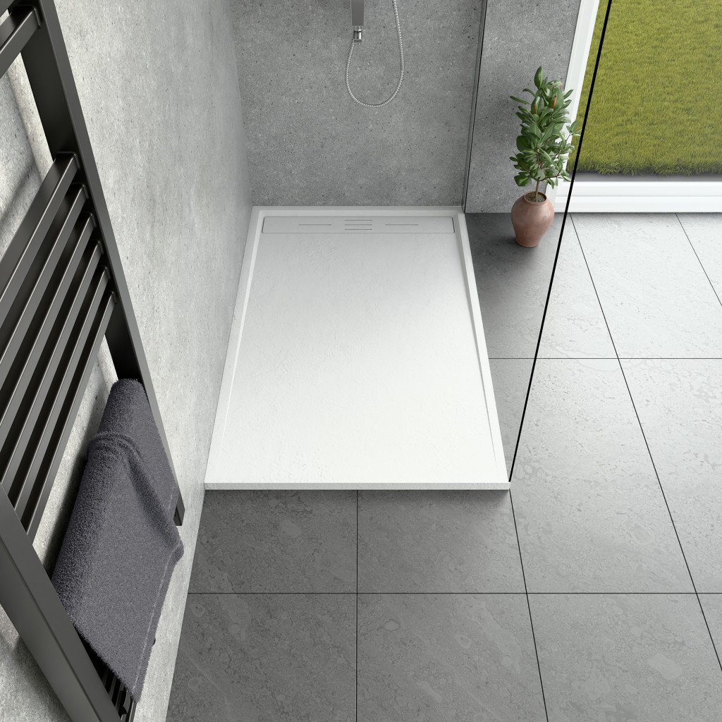 Welland kőhatású prémium zuhanytálca, ami egyesíti a legújabb fürdőszobai trendeket a praktikus felhasználással. Telepíthető a padlóra vagy padlóba is süllyeszthető, ezáltal a végső padlóburkolattal egy síkban kialakított zuhanyfelületet kapunk. Rejtett zuhanylefolyóval kialakított változat, kellemes tapintású, eszétikus, természetes kőhatású felülettel, ami hatékonyabb csúszásgátlást kínál a hagyományos akril zuhanytálcákkal szemben. A szifon készletet a csomag tartalmazza.