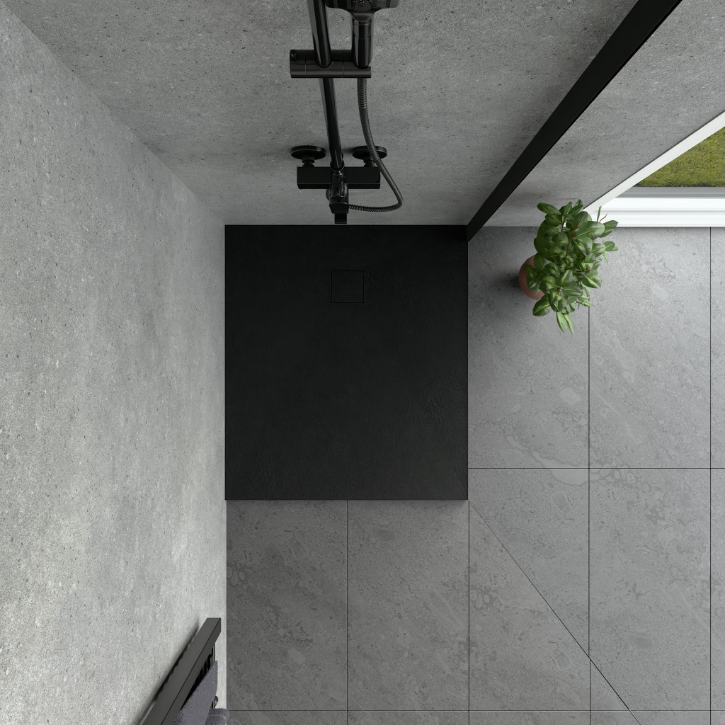 Kőhatású zuhanytálca - 80 x 90 cm - fekete