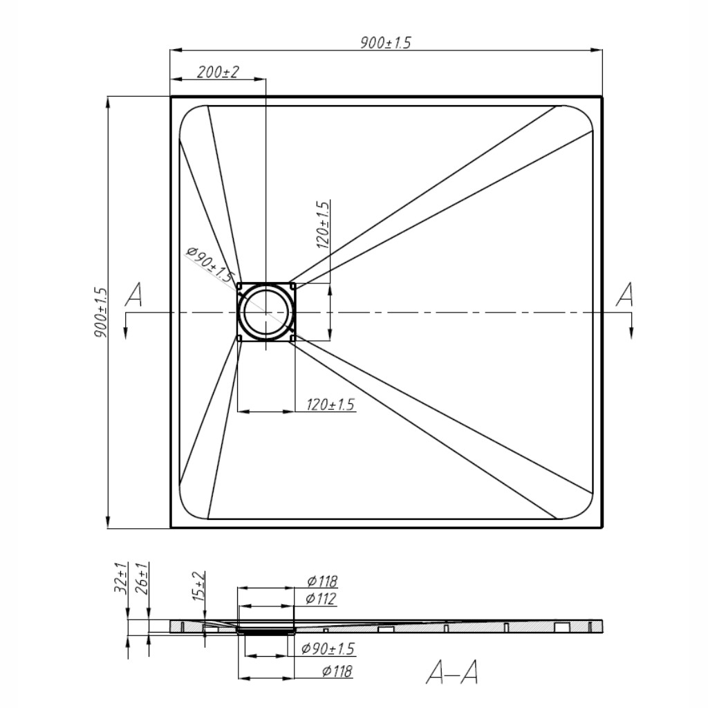 Optimális lejtés: A zuhanytálcát úgy alakították ki, hogy a víz szabadon áramolhasson a lefolyó felé, e kellő lejtési szöggel, ami még nem érzékelhető. Biztosítja a víz gyors és hatékony elvezetését a zuhanytálca felületéről, megelőzve a tócsák kialakulását vagy a víz kifolyását.